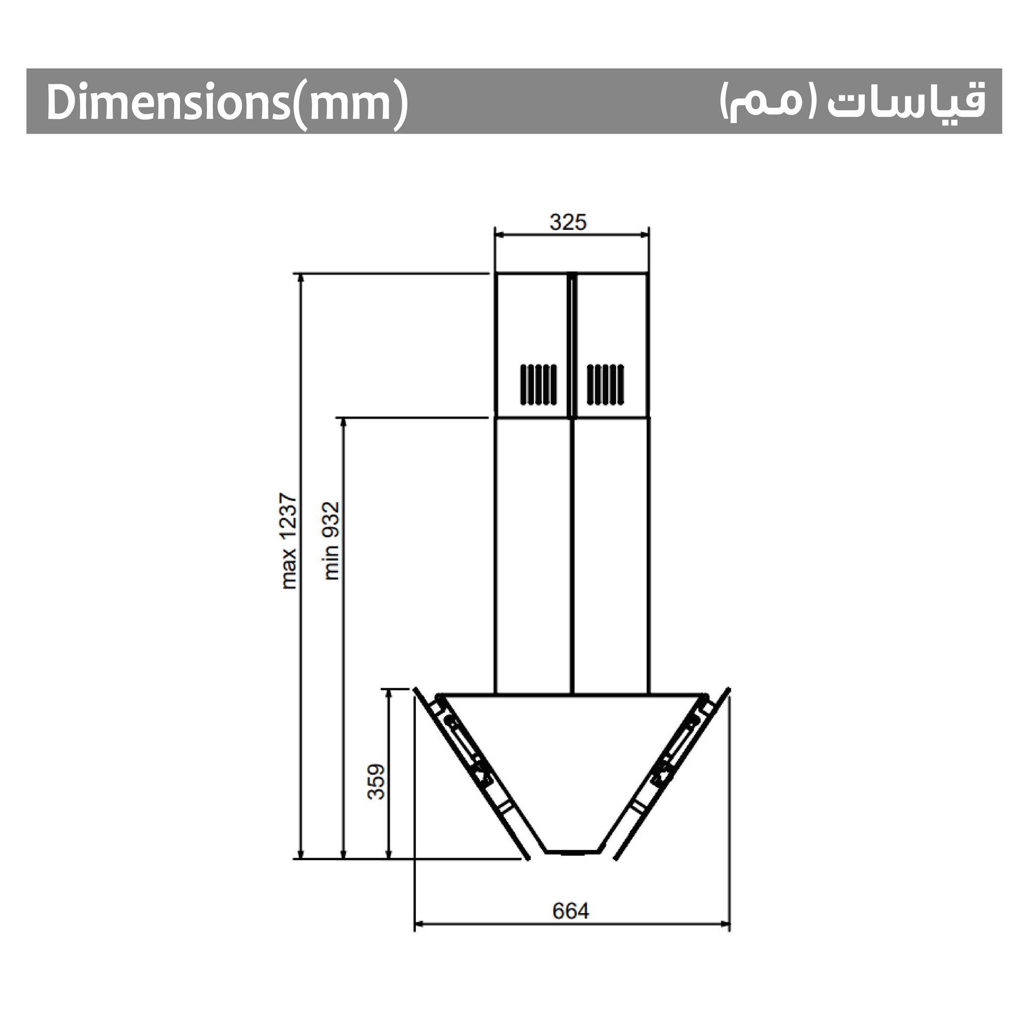 هيكل معلق متين: يتميز بأعمدة تعليق سوداء متينة تتناسب مع لون الشفاط وتضمن ثباتاً فائقاً.
