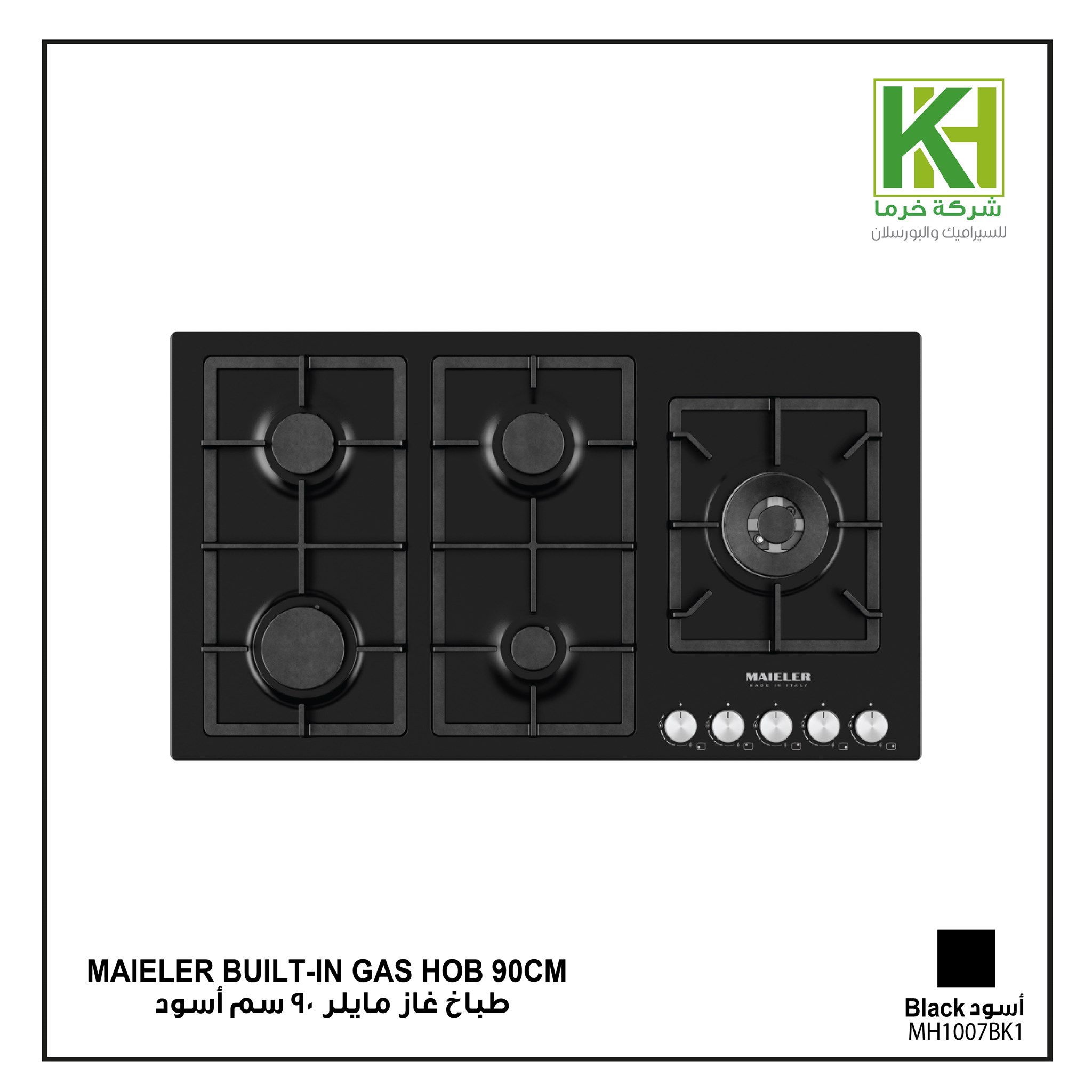 نبذة عن سطح طباخ غاز مايلر (Maieler) بلت-إن 90 سم - أسود تيربو جانبي