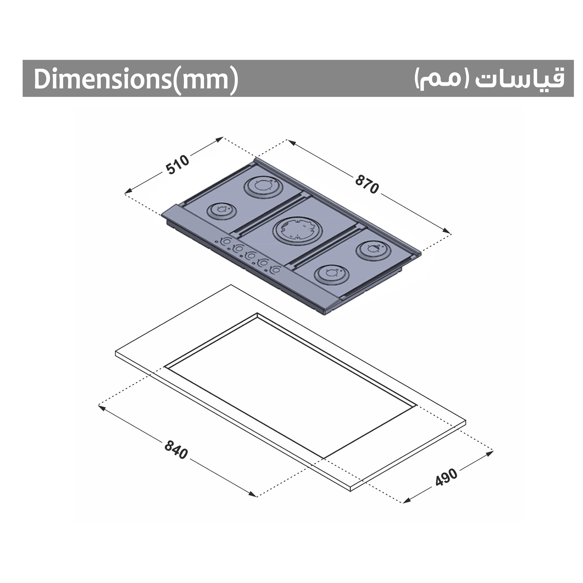 تغطية واسعة 90 سم: يوفر 5 شعلات غاز مرتبة بذكاء لاستيعاب كافة احتياجات الطهي في وقت واحد.
