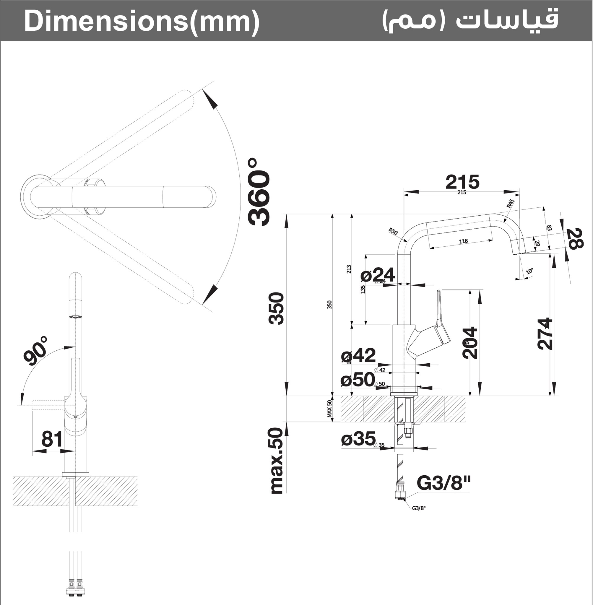 - صنبور دوّار بزاوية 360° لمدى وصول أوسع