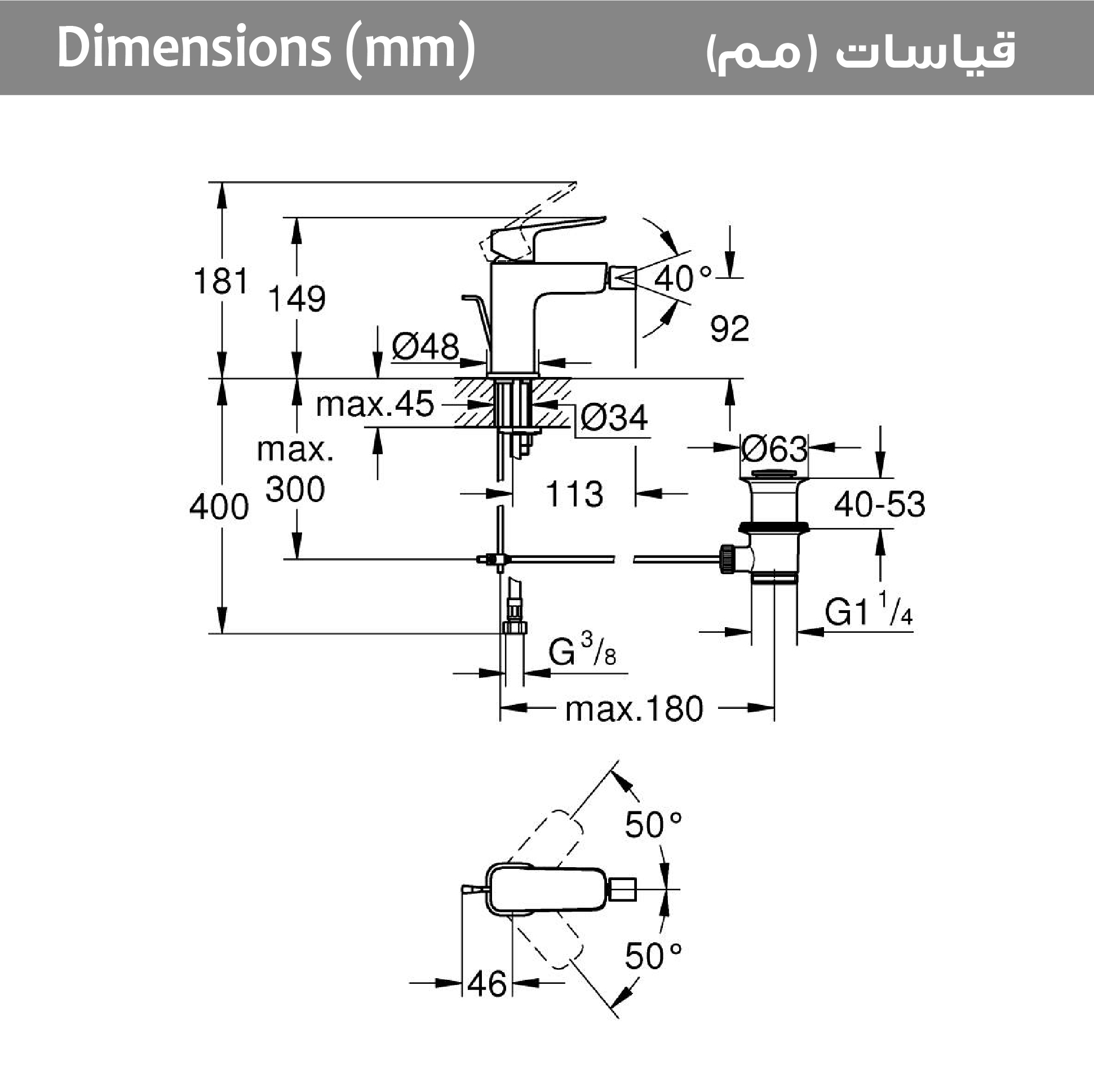 - تقنية GROHE EcoJoy لمياه أقل وتدفق ممتاز