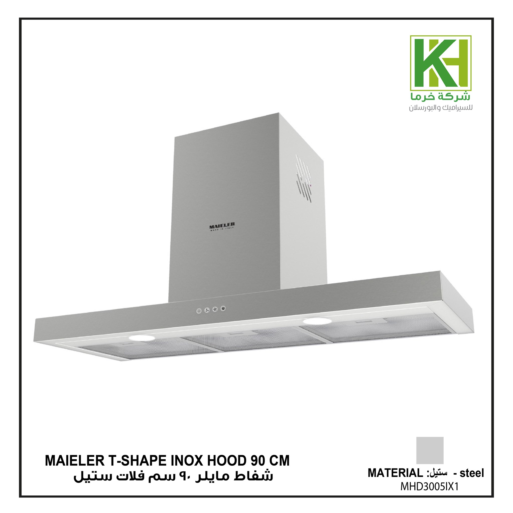 شفاط مايلر (Maieler) موديل T-Shape مقاس 90 سم - ستيل كامل